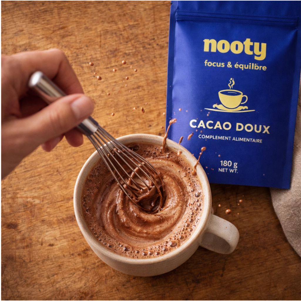 Le café classique stimule vite… puis retombe tout aussi vite. Ce pic peut laisser place à de la nervosité et à une baisse d’attention. Nooty a été conçu différemment : une formule sans caféine qui privilégie un focus plus stable et plus équilibré, sans le stress du café.